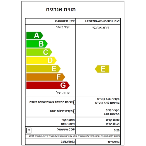מקדם יעילות בחימום: C.O.P 4.04