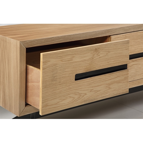- מזנון על גבי רגלי ברזל שחור גבוהות מראה עץ עוצמתי 2 מגירות גדולות עם טריקה שקטה וקלפה במרכז LEONARDO