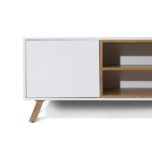 המזנון RJ08 עשוי משילוב של עץ ו-MDF ובעלת צבע לבן ועץ.