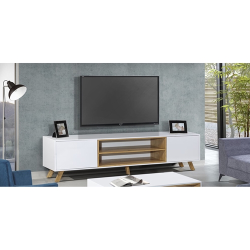 - מזנון סלון מרהיב המשלב צבע לבן ועץ מעניקים לסלון מראה חזק ומעוצב LEONARDO
