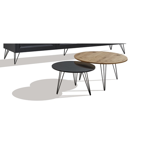 זוג שולחנות סלון עגולים אחד עץ והשני שחור LEONARDO