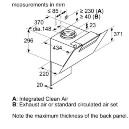 אפשרות להתקנה במצב יניקה (הוצאת האוויר החוצה בעזרת צינור) או לסחרור אוויר (סינון האוויר