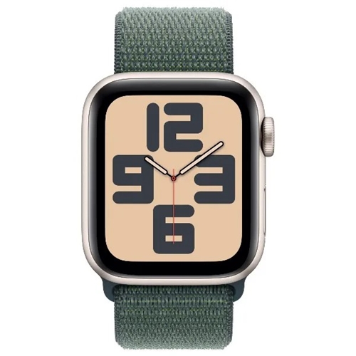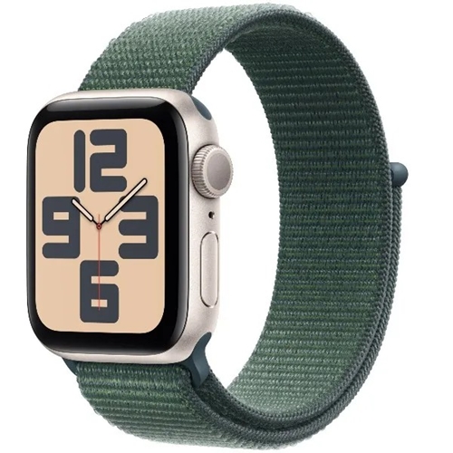 - שעון חכם 40 מ"מ Apple Watch SE GPS 40mm Starlight Aluminium Case with Lake Green Sport Loop אפל צבע לבן רצועה ירוקה