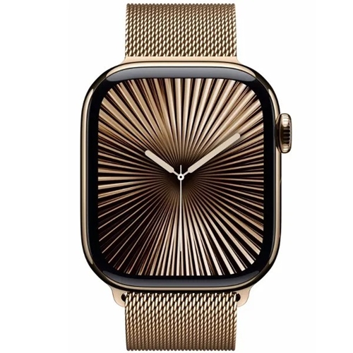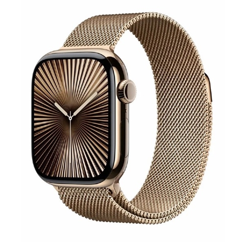 - שעון חכם אפל Apple Watch Series 10 GPS + Cellular 42mm Gold Titanium Case with Gold Milanese Loop