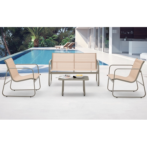סט ריהוט הגינה הכולל שולחן, שתי ספות יחיד וספה זוגית, מבית MY CASA, הוא הפתרון המושלם לשדרוג חלל החוץ שלכם ולהפיכתו למקום מפלט מרגיע ונעים.