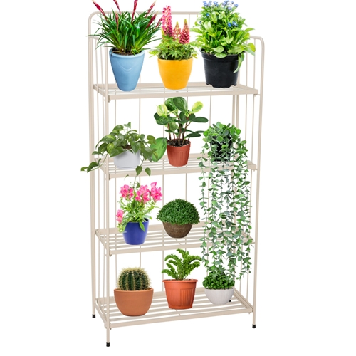 מעמד לעציצים דקורטיבי 4 קומות מברזל גוון אופוויט