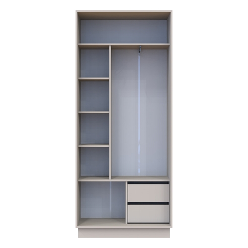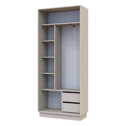 צד שני: 2 מדפים, 2 מגירות, ומתקן תליה