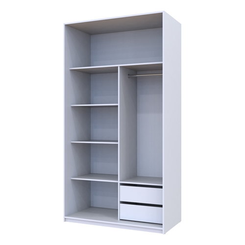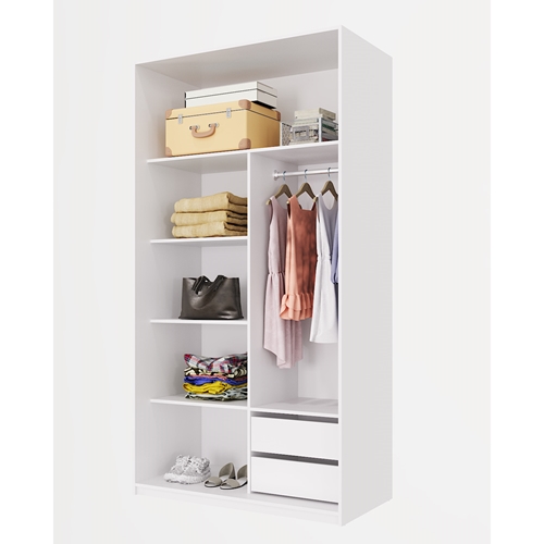 צד שני: 2 מדפים, 2 מגירות, ומוט ותלייה