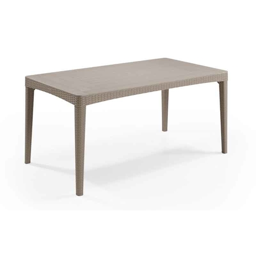 השולחן עשוי פלסטיק חזק בטקסטורת דמוי עץ והוא עמיד בפני תנאי מזג האוויר
