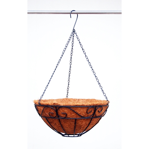 סל מתכת עם שרשרת תליה ומצע קוקוס