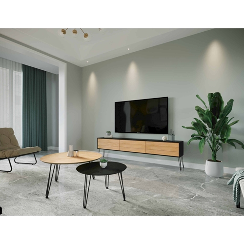 - סט מזנון וזוג שולחנות איכותיים דגם אלון משולב