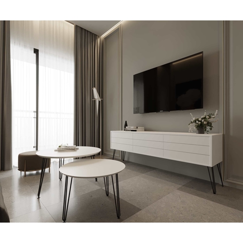 סט מזנון וזוג שולחנות איכותיים דגם שלג