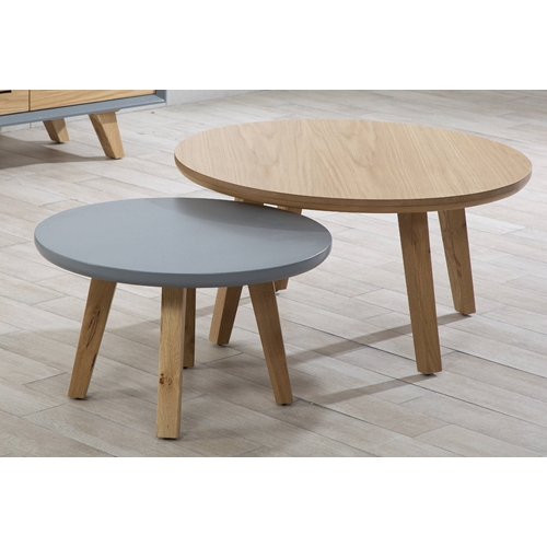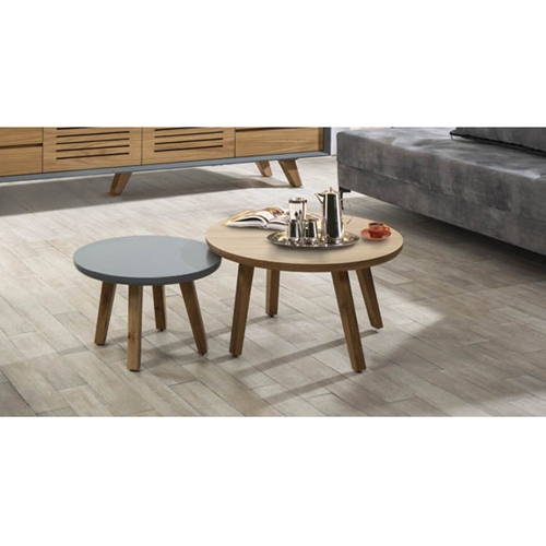 - זוג שולחנות עגולים לסלון דגם פרסטיג' אפור + גוון עץ טבעי LEONARDO