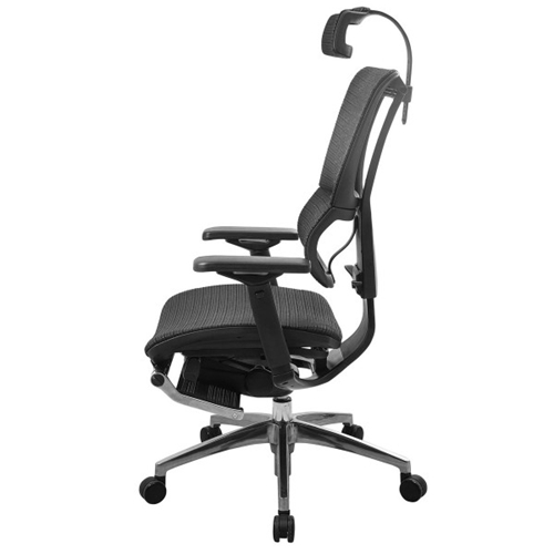 הכסא כולל הדום רגליים נשלף ומאפשר מנוחה במצב מאוזן במהלך יום עבודה.