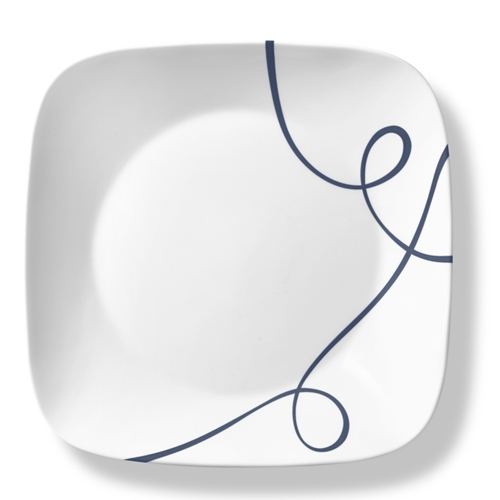 - דגם ליה המרובע עם עיטורים מעוגלים כחולים כהים על גבי הצלחת,