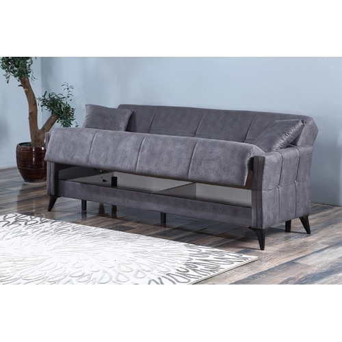 ספה תלת מושבית הנפתחת למיטה עם ארגז מצעים.