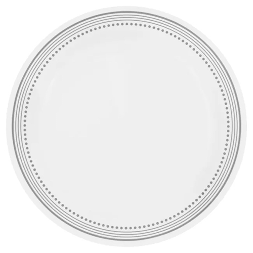 דגם מיסטיק גריי מעוטר בפסים דקים ונקודות קטנות בצבע אפור בשולי הצלחת, דגם אוורירי ועדין משדרג כל שולחן ומתאים הן לשימוש יומיומי והן לאירוח חגיגי.