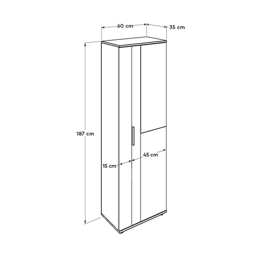 שתי דלתות, האחת ברוחב 45 ס"מ עם מראה בחזיתה, והשניה ברוחב 15 ס"מ.