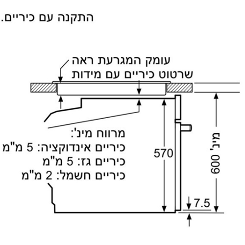 מידות נישה: רוחב -560 מ"מ - 568 מ"מ גובה - 58.5 ס"מ - 59.5 ס"מ עומק - 55 ס"מ.