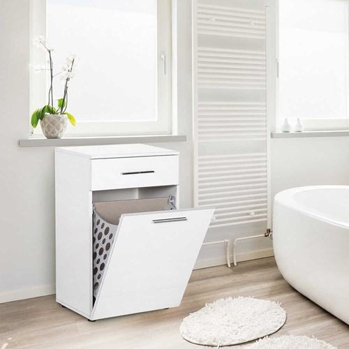 השידה כוללת מגירה וסל אחסון גדול בעל פתיחה עליונה.