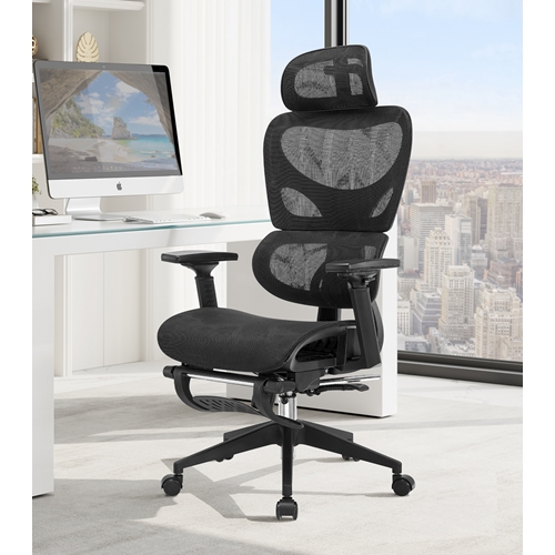 הכיסא מגיע עם ריפוד רשת ייחודי ואוורירי, שמספק תמיכה אורתופדית ומאפשר זרימת אוויר נעימה לאורך כל שעות הישיבה. בנוסף, הוא כולל הדום נשלף לרגליים – פתרון מושלם למנוחה קצרה באמצע יום עבודה עמוס.