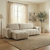 - מערכת ישיבה פינתית מבד נפתחת למיטה זוגית עם ארגז מצעים דגם טופז קרם/אפור HOME DECOR