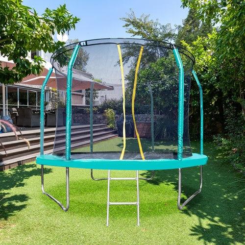 טרמפולינה ביתית עם מסגרת עליונה ייחודית לחיזוק מבנה הרשת ולמקסימום בטיחות.