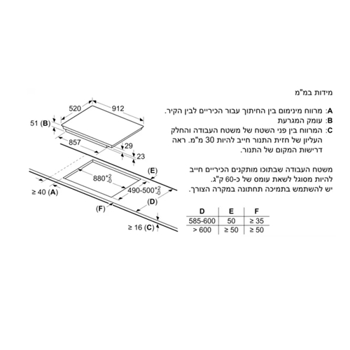 איזור בישול אחד x 40 ס"מx24 ס"מ, 3300 ואט (עוצמה מירבית 3700 ואט) או שני אזורי בישול x 20 ס"מ, 24 ס"מ, 2200 ואט (עוצמה מירבית 3700 ואט);