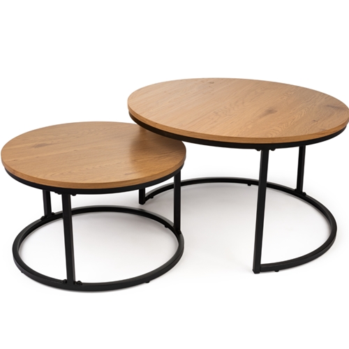 הסט כולל שני שולחנות עגולים בגדלים שונים, המיועדים לשימוש מגוון ונוח.
