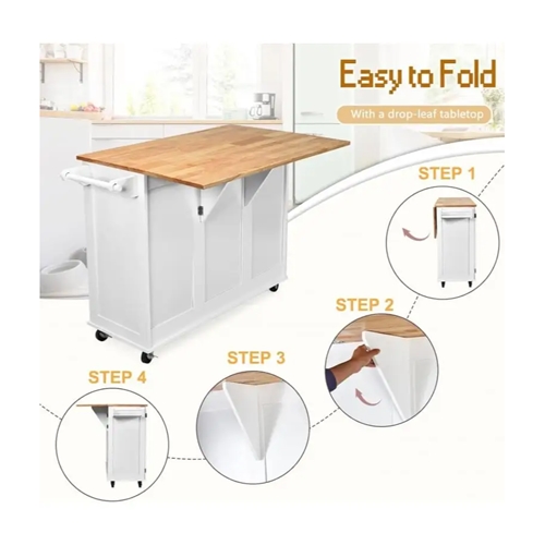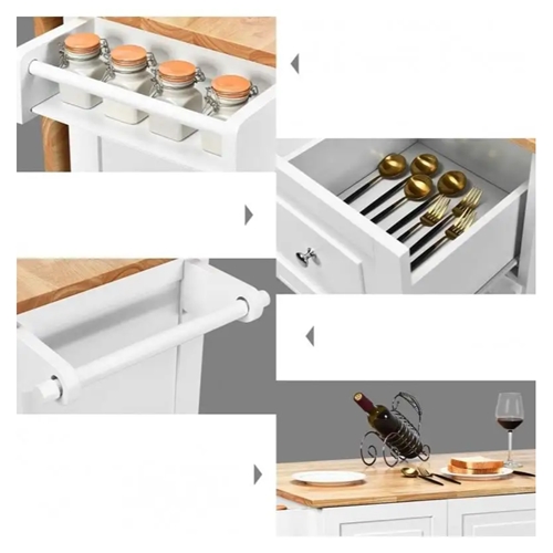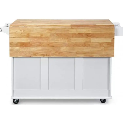 עיצוב אלגנטי ופונקציונלי: האי למטבח מגיע בגימור לבן קלאסי עם משטח עץ טבעי, המשתלב באופן מושלם במטבחים בעיצוב מודרני, כפרי או קלאסי.