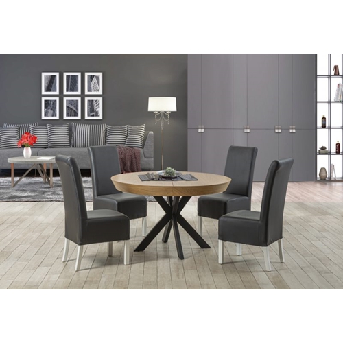- שולחן פינת אוכל עגול נפתח מעץ בציפוי פורניר אלון LEONARDO