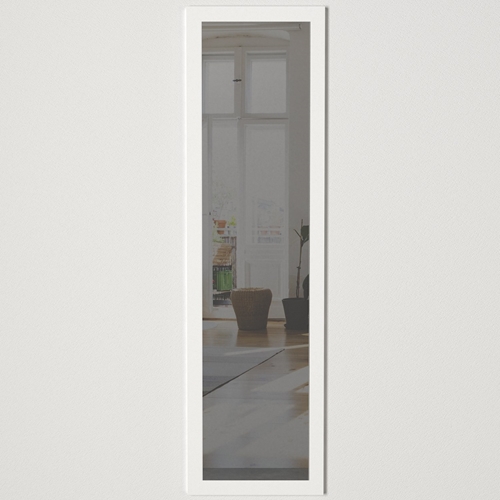 מראת קיר מעוצבת בתוך מסגרת דקה לתליה על הקיר.