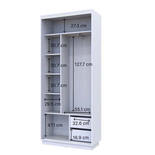 - ארון הזזה 90 ס"מ עם דלת מראה ומגירות דגם אדם HOME DECOR