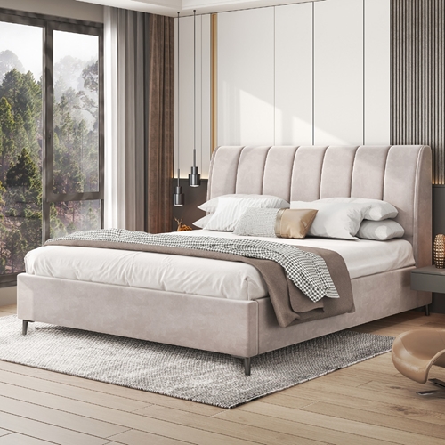 מיטה זוגית מרופדת עם בסיס עץ מלא בעיצוב מודרני מבית HOME DECOR
