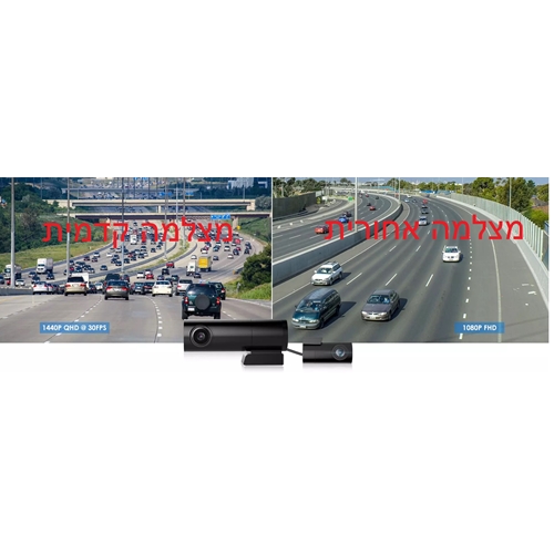 2 מצלמות צבעוניות לצילום רציף – קדמית 170 מעלות + מצלמה אחורית 130מעלות ניתקת למיקום בכל אזור ברכב.