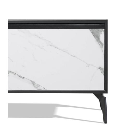 המזנון כולל שתי מגירות לחיצה ענקיות, קלאפה מרכזית ורגלי ברזל שחורות, כולל רגל תמיכה מרכזית.