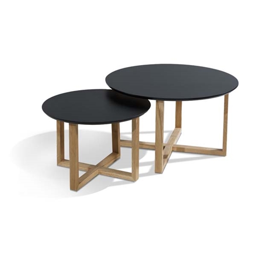 שני השולחנות העגולים משתלבים חלקית זה בזה ומשתלבים במראה הסלון שלכם.