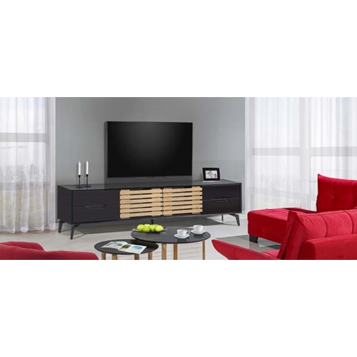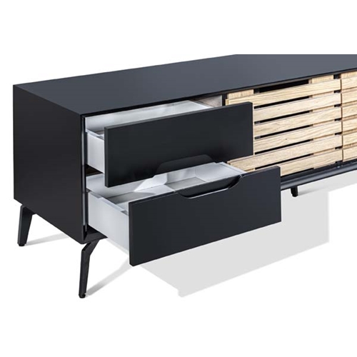 המזנון המרשים בעיצובו, מסתיר בתוכו גם חללי אחסון גדולים. משני הצדדים, 4 מגירות עם טריקה שקטה.