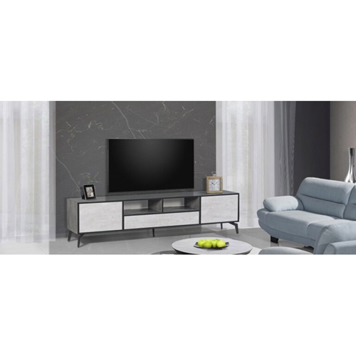 המזנון העשוי עץ MDF כולל שני חללי ממיר, מגירה רחבה ושתי דלתות בשני הצדדים.