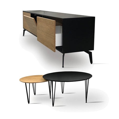 - סט מזנון ו-2 שולחנות עגולים המזנון כולל שתי מגירות ענקיות וקלאפה מרכזית