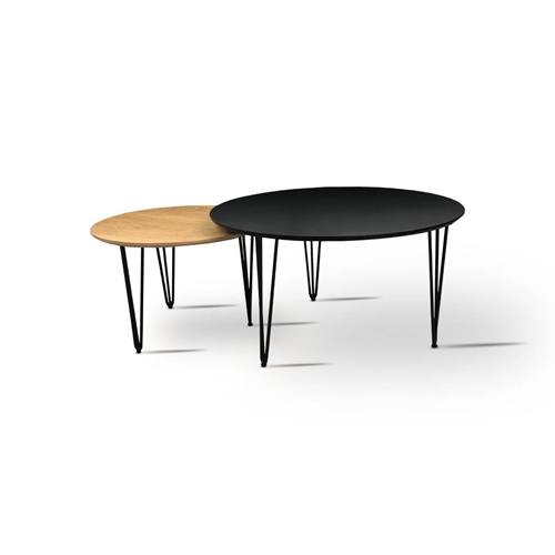 השולחנות עשויים MDF בגימור שחור (גדול) ועץ (קטן).