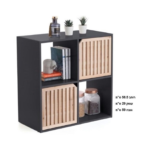 כוורת מעוצבת בצבע שחור הכוללת 4 תאים עם שני דלתות מעץ מסוג MDF