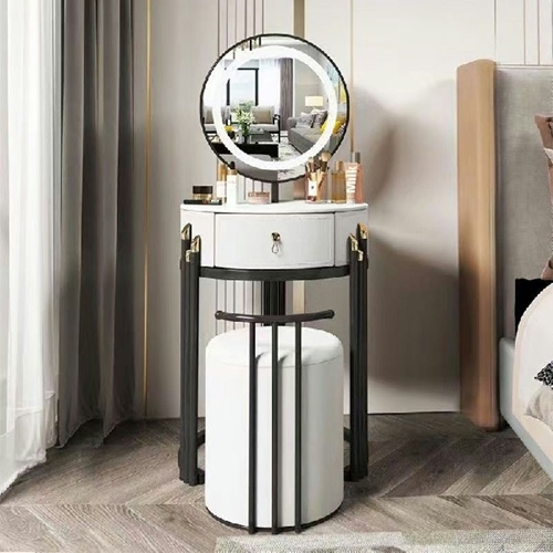 - שידת איפור עם כיסא ומראת LED עגולה בגוון לבן
