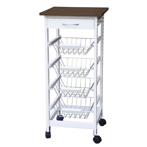 עגלת עץ למטבח 4 קומות מעוצבת לאחסון של ירקות/פירות ומוצרים שונים.
