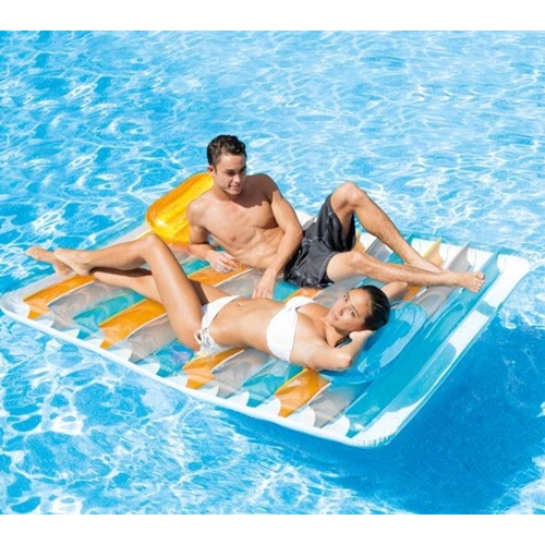 מזרון מתנפח זוגי בדוגמת פסים עם צבעים חיים.