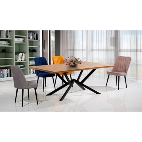 - פינת אוכל מלבנית 1.8 מטר דגם דור מעץ פורניר עם פתיחה ורגלי ברזל + 6 כיסאות אור LEONARDO