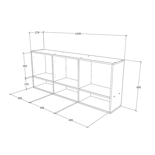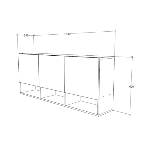 - ארון שירות עליון 3 דלתות ומדף פתוח ברוחב 144 ס"מ דגם אורביט מבית TUDO DESIGN