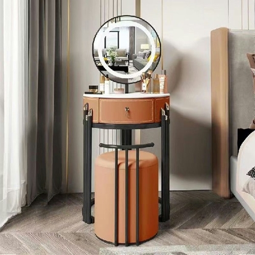 למה כדאי לקנות שידת איפור עם כיסא תואם ומראת LED עגולה בגוון קאמל ב-P1000