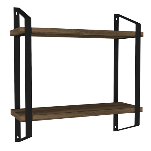 המדפים בשילוב מיוחד של עץ אגוז ומתכת שחורה.