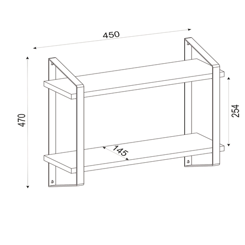 יחידת מדפים דו מדפית מעוצבת לתליה.